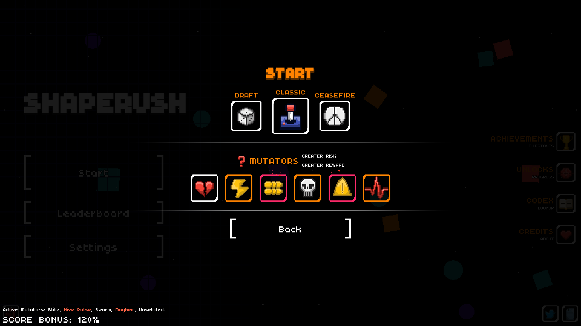 Dive into Shaperush , a high-octane pixel art arcade game where quick reflexes are key! Dodge, weave, and collect. Survive an endless stream of action in a dynamic arena. Survive for as long as you can, unlock powerful new weapons like the "Shatter Axe," and aim for the ultimate high score!